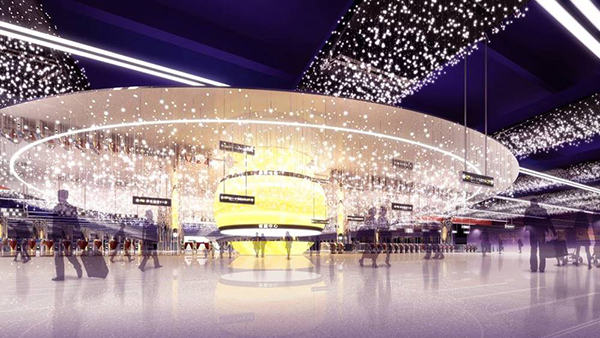 由于時間短任務重,設計團隊認識到大規模顛覆車站現狀并不現實,嘗試借鑒廣場設置雕塑的設計邏輯,將5個不同的星球裝置結合不同的站內設施嵌入巨大的站廳空間中,建立起識別性和引導性。