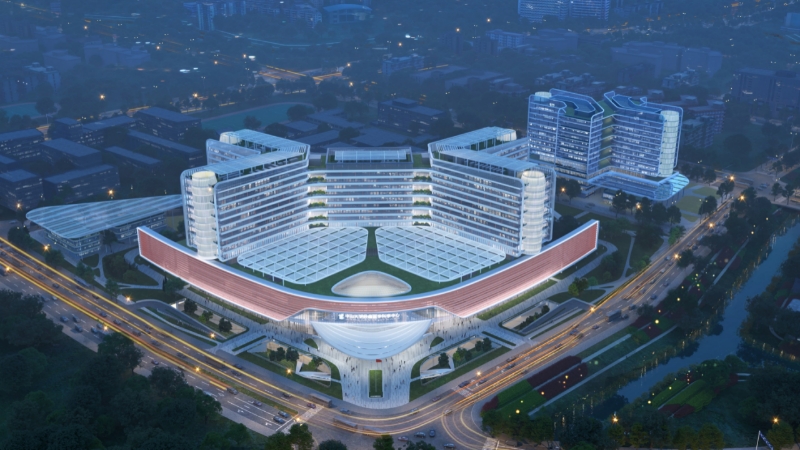 中山大學腫瘤醫學科學中心(天河院區)位于廣州市天河區龍洞片區,鳳凰山南側,由省建院牽頭設計,總建筑面積約29.97萬平方米。項目秉承“鯤鵬意向 面向未來”設計理念,以飛鳥般的建筑姿態與鳳凰山形成建筑與自然的對話,詮釋著中山大學腫瘤防治中心征服癌癥、造福人類的偉大使命。據悉,該項目規劃了1100張病床,預計在2027年12月竣工驗收并正式投入使用。